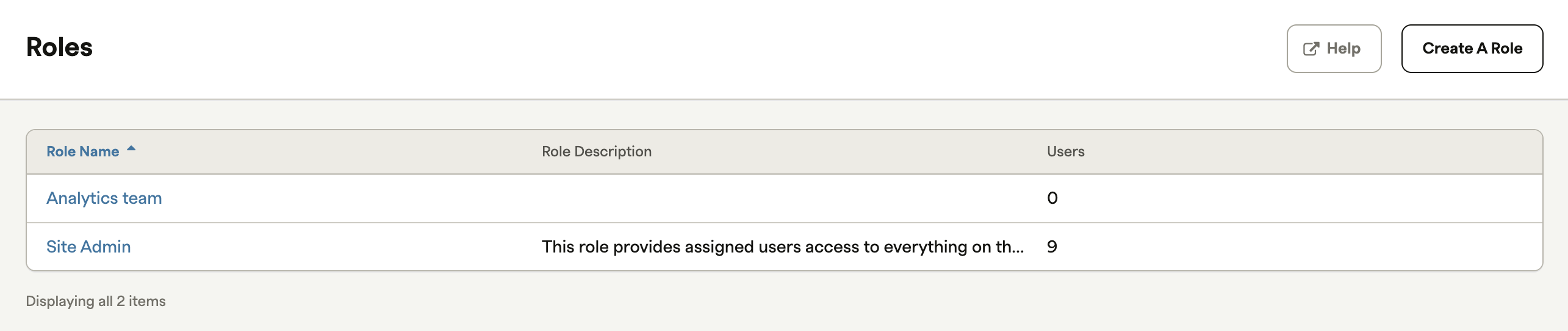 - Indelibility: The Site Admin role itself cannot be deleted or edited, except for the role description. This is designed to prevent a situation where no users have full access to manage the site.