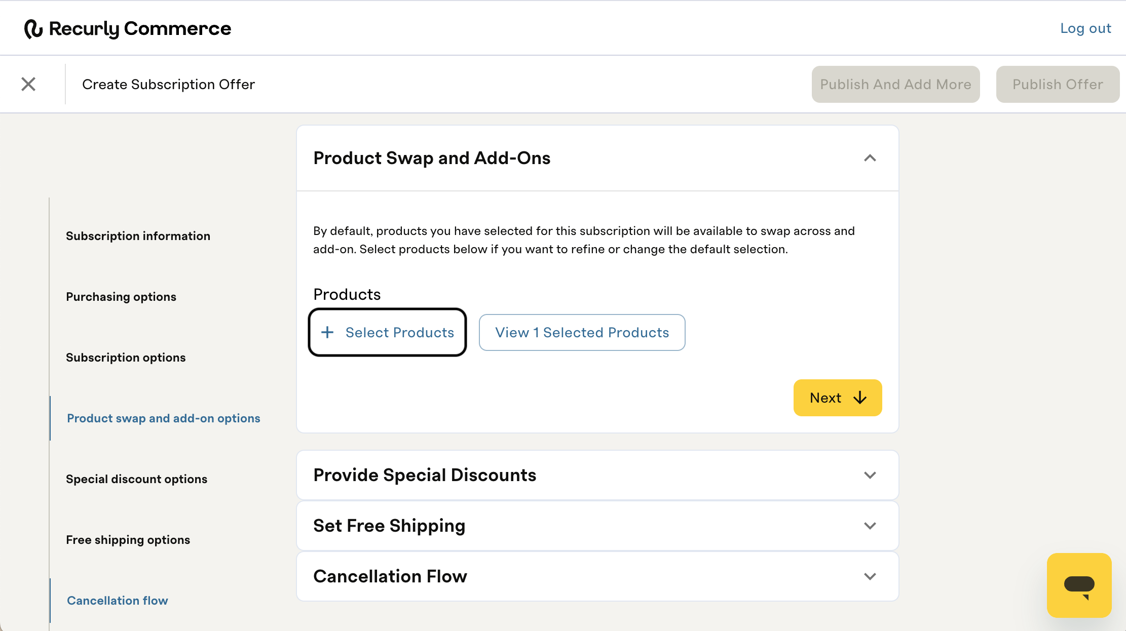 Note: By default, only the products you selected for this subscription are available to swap or add-on—but you can extend add-on availability to any store product.
