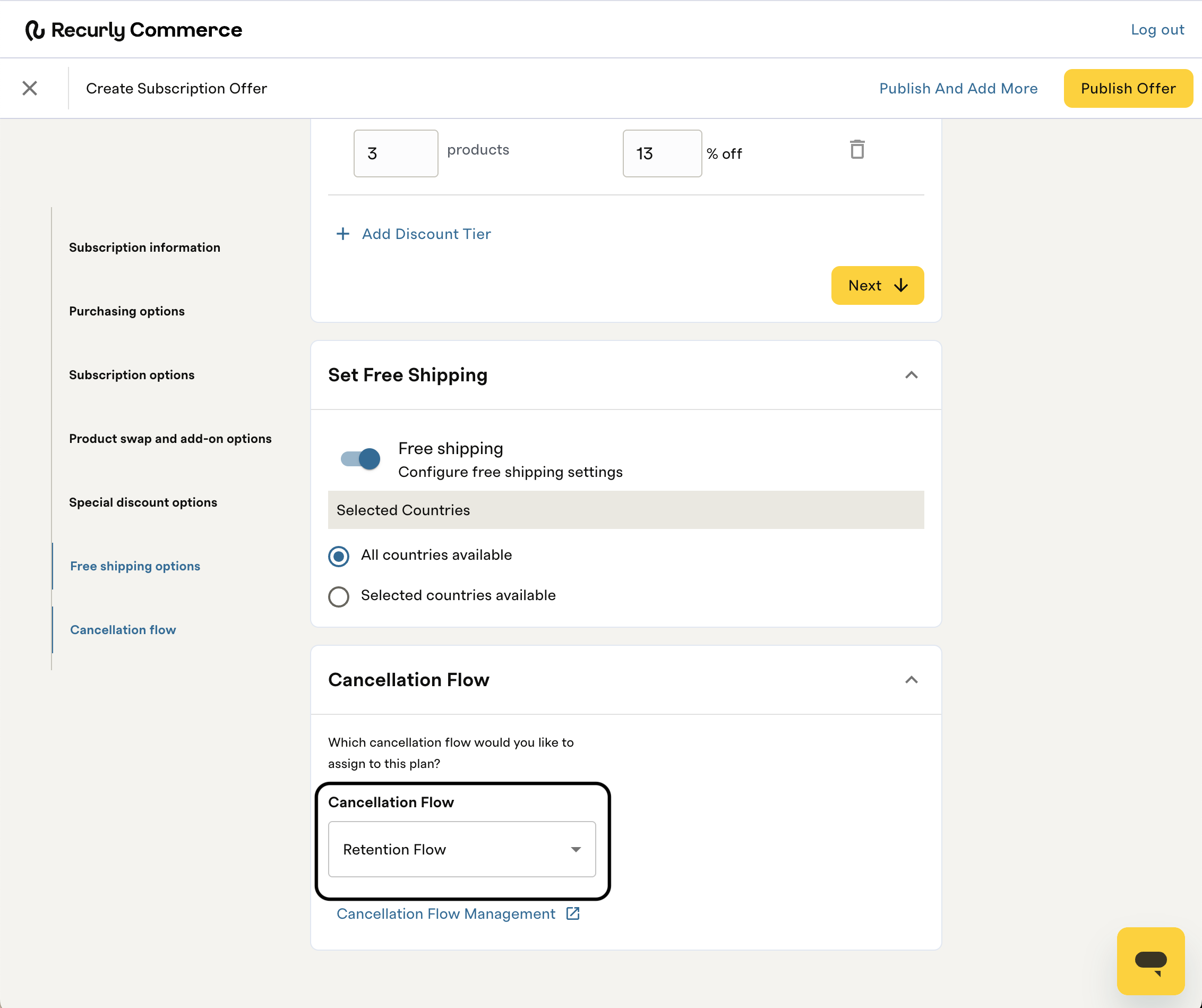 Finally, set up your desired Cancellation Flow. With tailored cancellation flows, you can configure flows that: