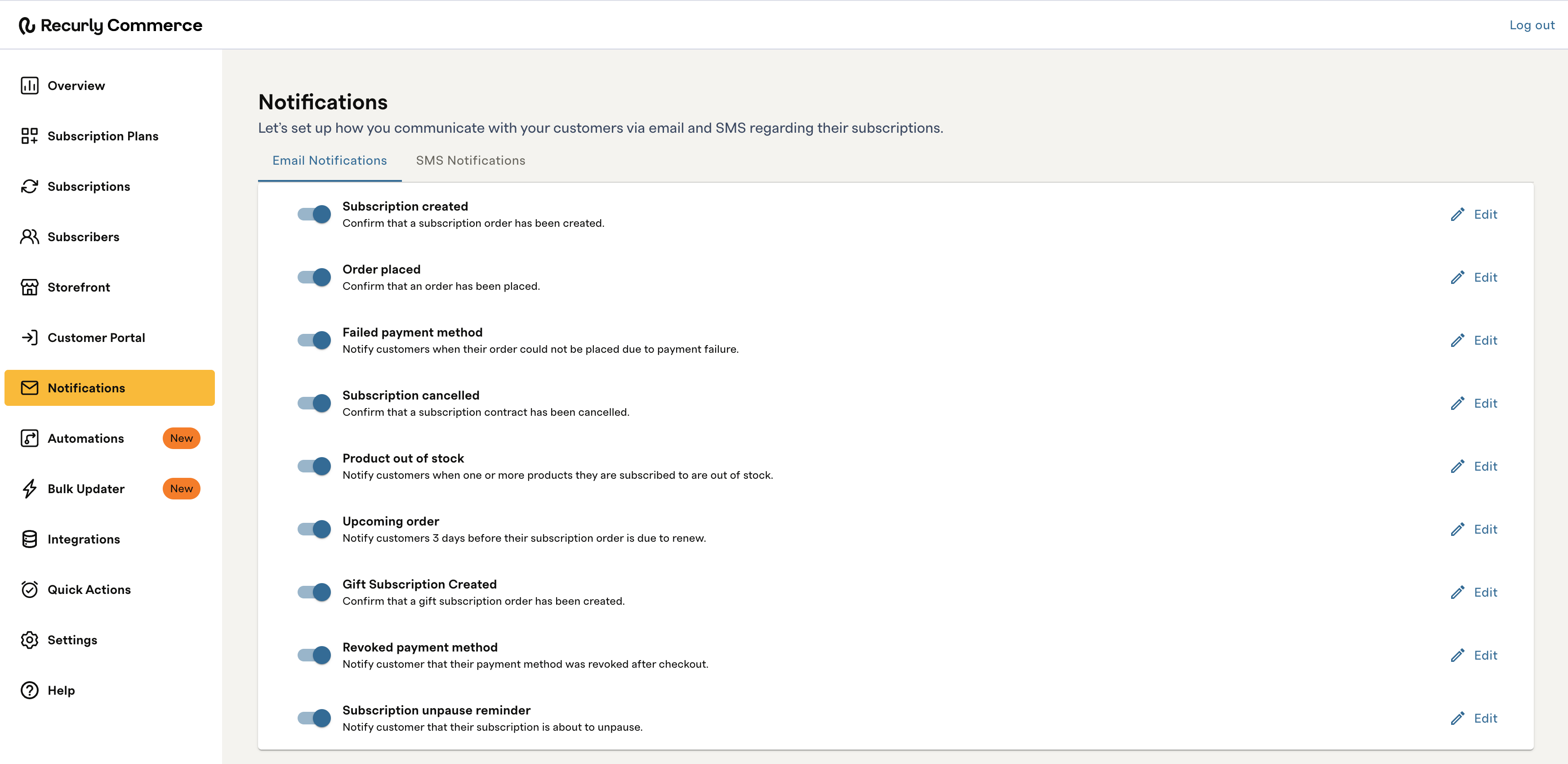 - Subscription unpause reminder: Alerts customers that their subscription is about to unpause.