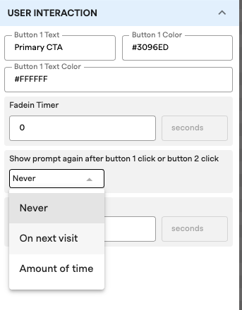 If desired, adjust the prompt visibility settings in the User Interaction section to display the prompt again after specific button clicks within your guide.