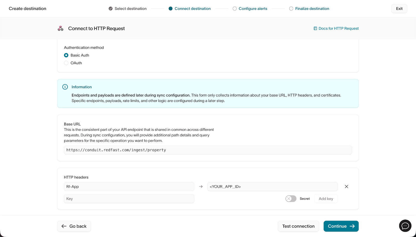 - Authentication Method: Select Basic Auth.