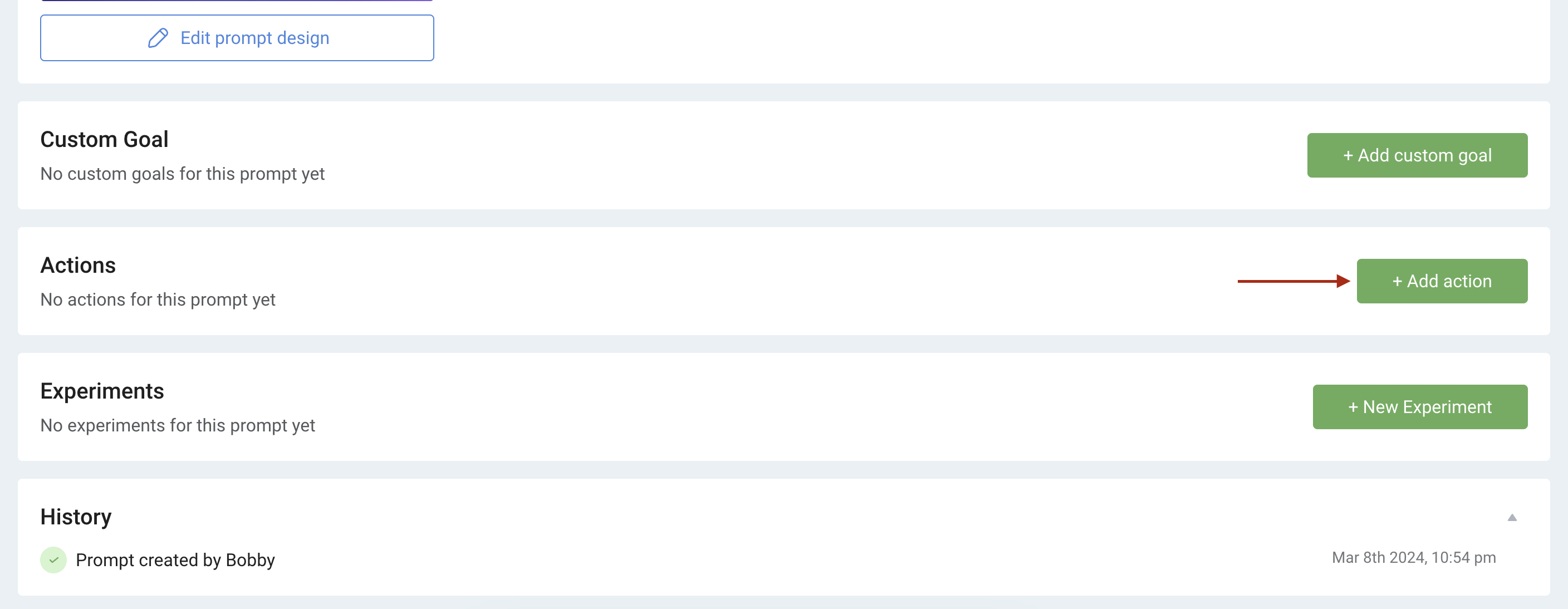 - From the prompt detail page, add a new website action