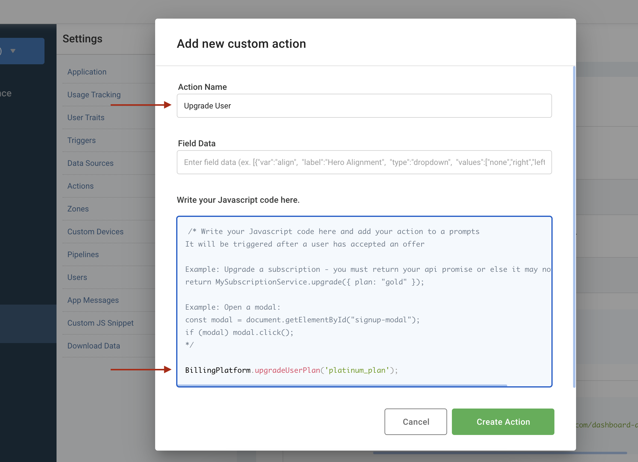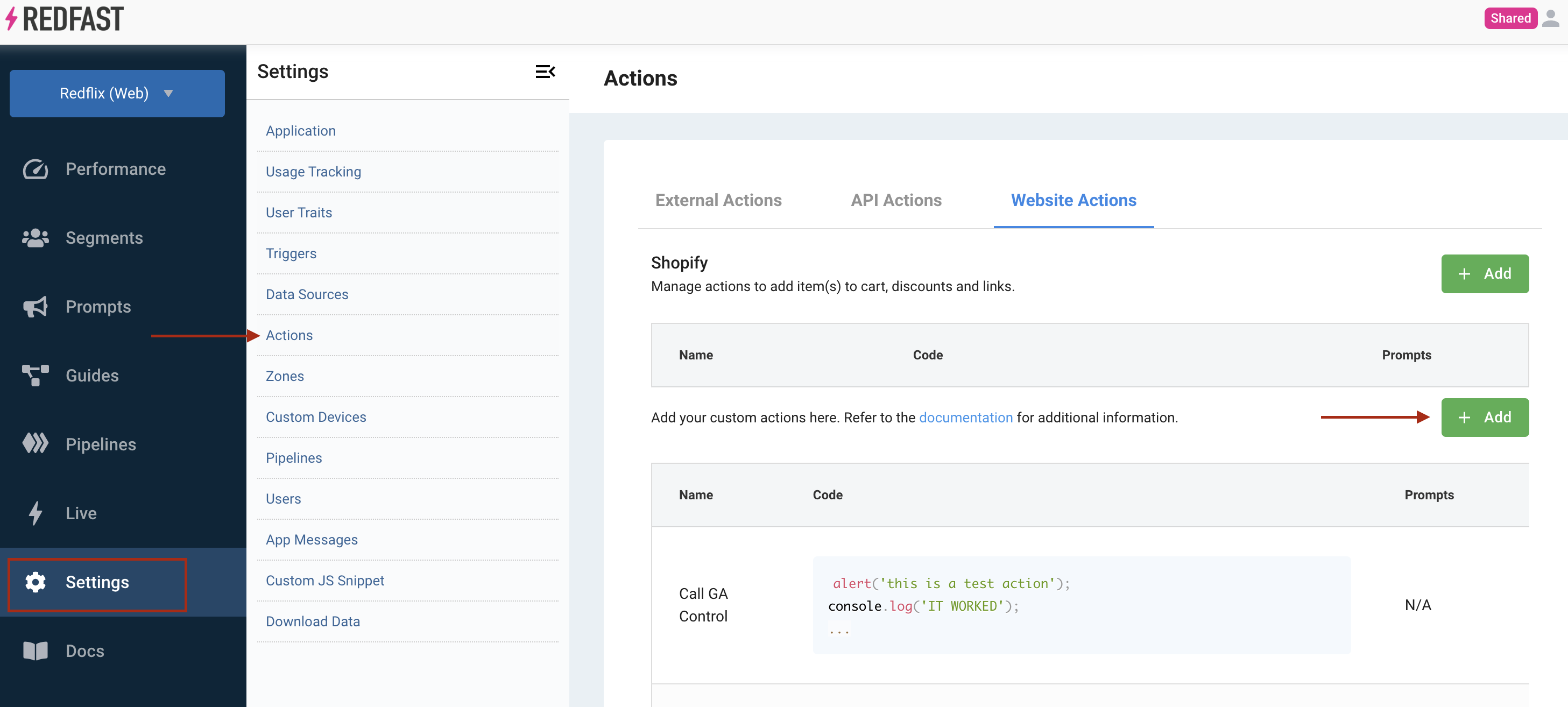 - Visit Settings → Actions → Website Actions
