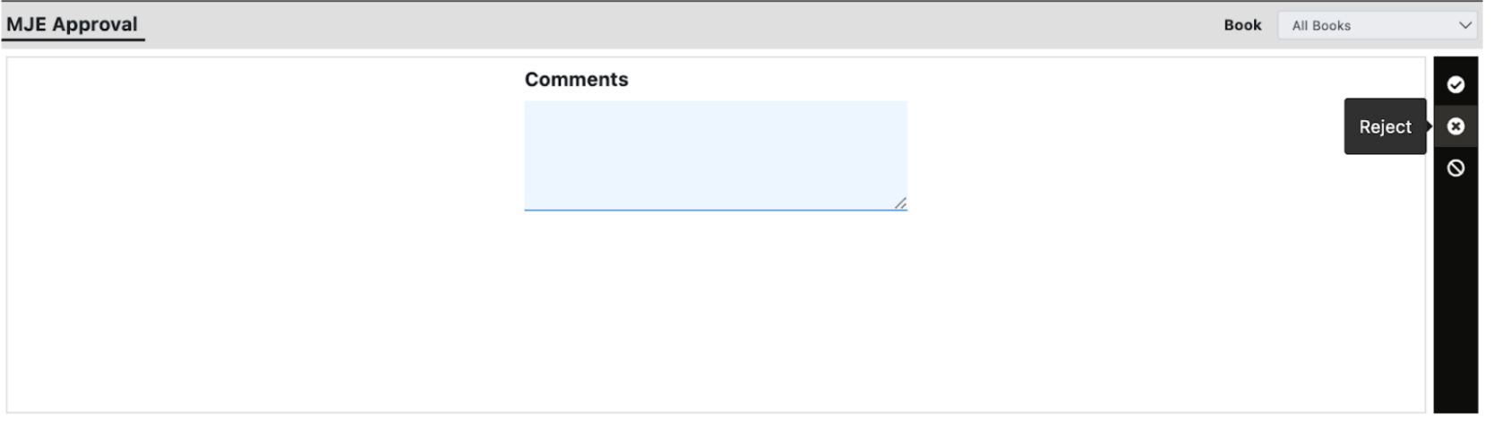 Reject to cancel the transaction and prevent it from affecting the books.