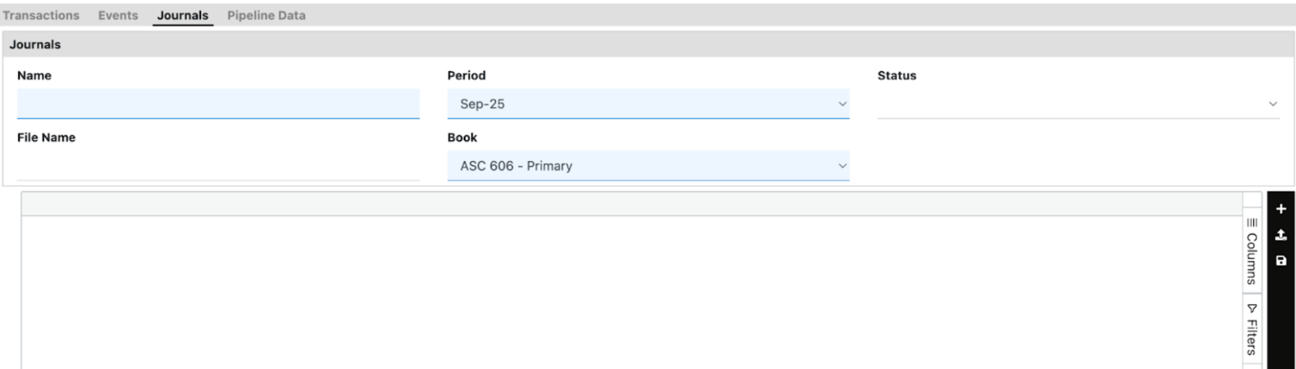 A manual journal entry is a journal entry that you upload into RevRec using a prepared file. After upload, the entry moves through a review and approval workflow before it is posted to the selected books and period.