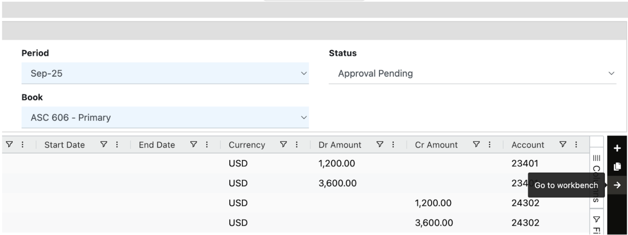 - Open the entry in the Revenue Workbench.