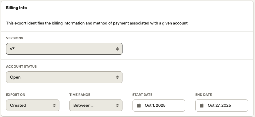 You can filter the billing information export data based on the account status. Here is how different statuses are defined: