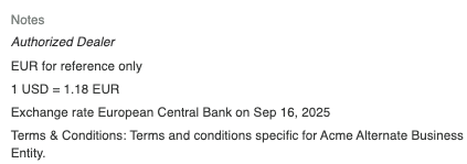 Invoice currency notes