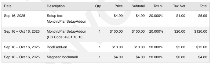 - Initial Subscription: The first invoice is included in the "New Subscription" email.