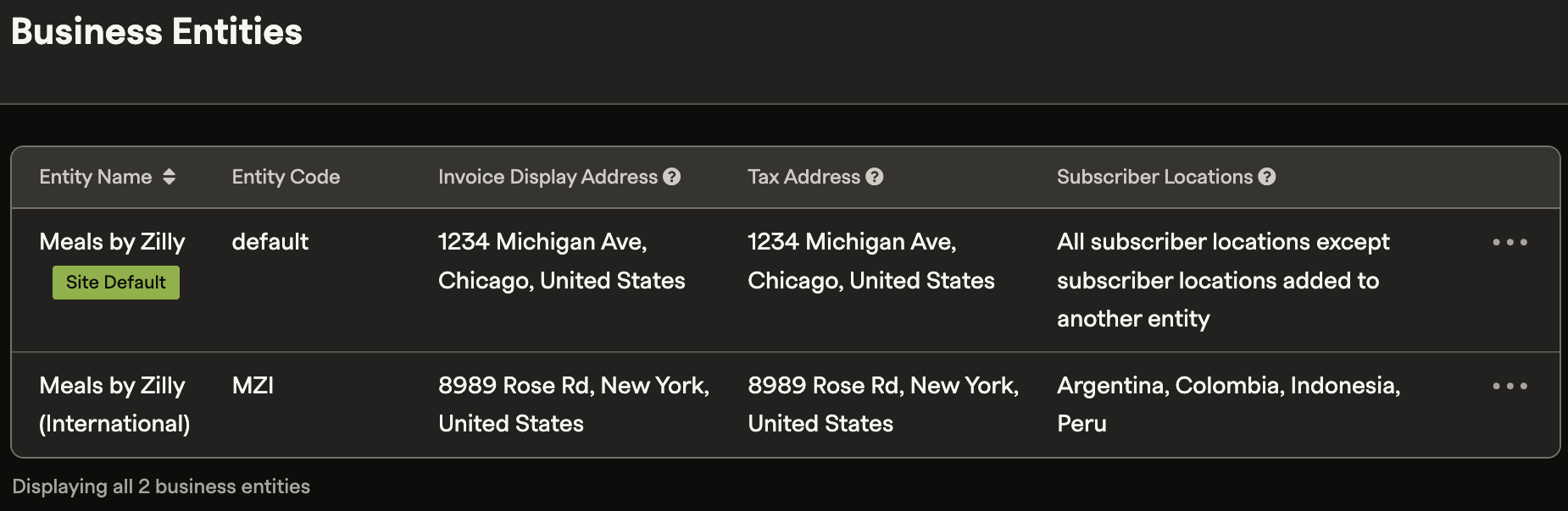 Business Entities let you configure Recurly to reflect how your organization is actually structured. An entity can represent a legal entity, a distinct business unit or brand, a subsidiary, a geographic headquarters, or a warehouse distribution center.