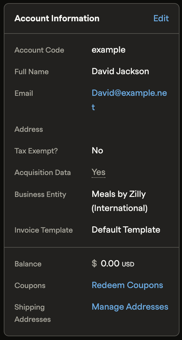 Note: Billing contact email addresses can only be configured in the Recurly Admin UI.