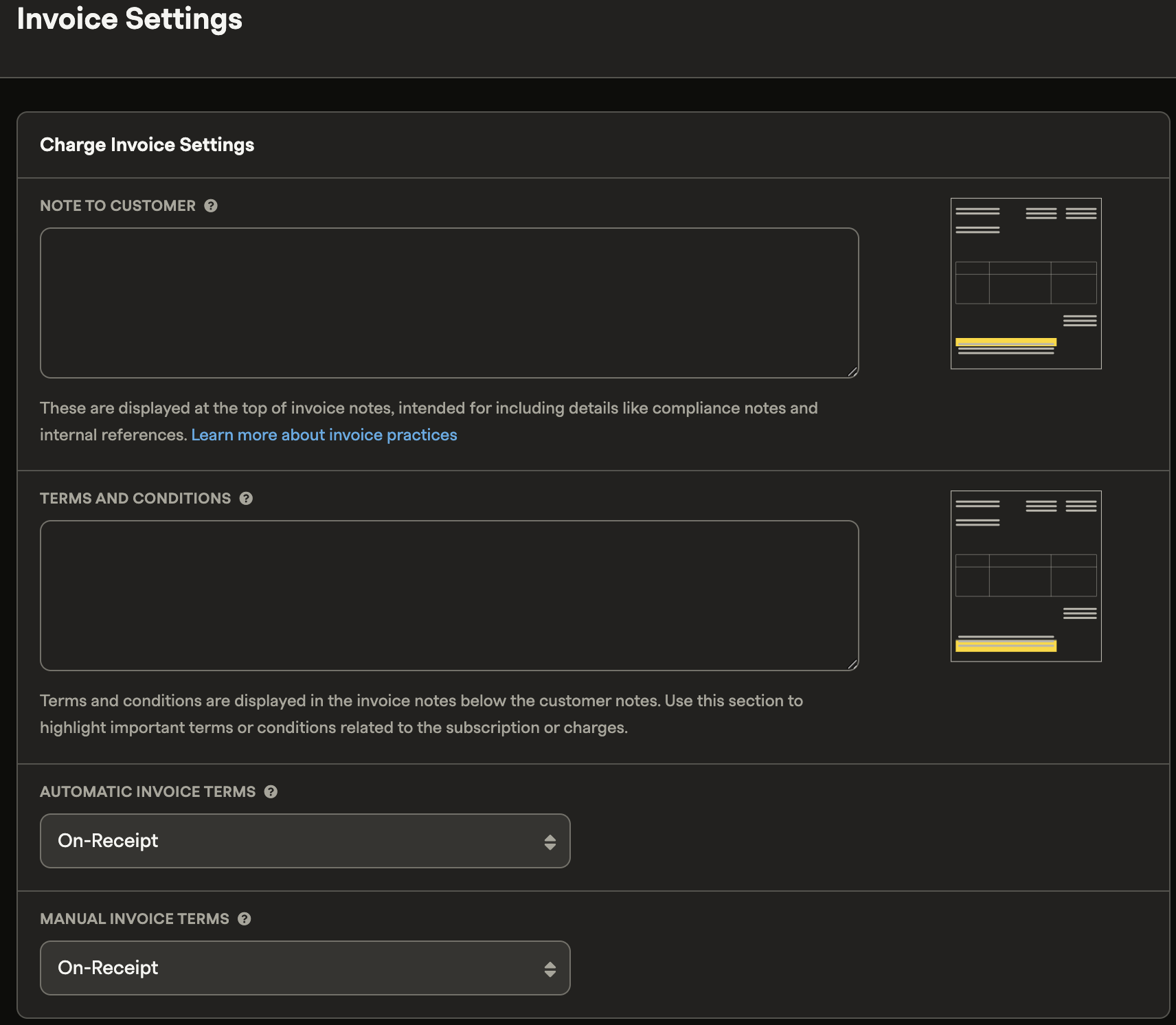 Note: Merchants on Starter and Professional plans can configure notes only on the Invoice Settings page — entity-level notes are not available on these plans.