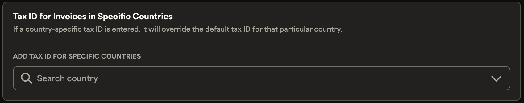 Country-specific TINs override the default when a customer's "BILL TO" address is in a country that has its own TIN configured on the entity.