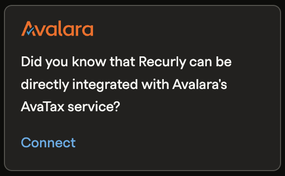 - In Recurly, go to Configuration → Taxes → Avalara AvaTax Settings