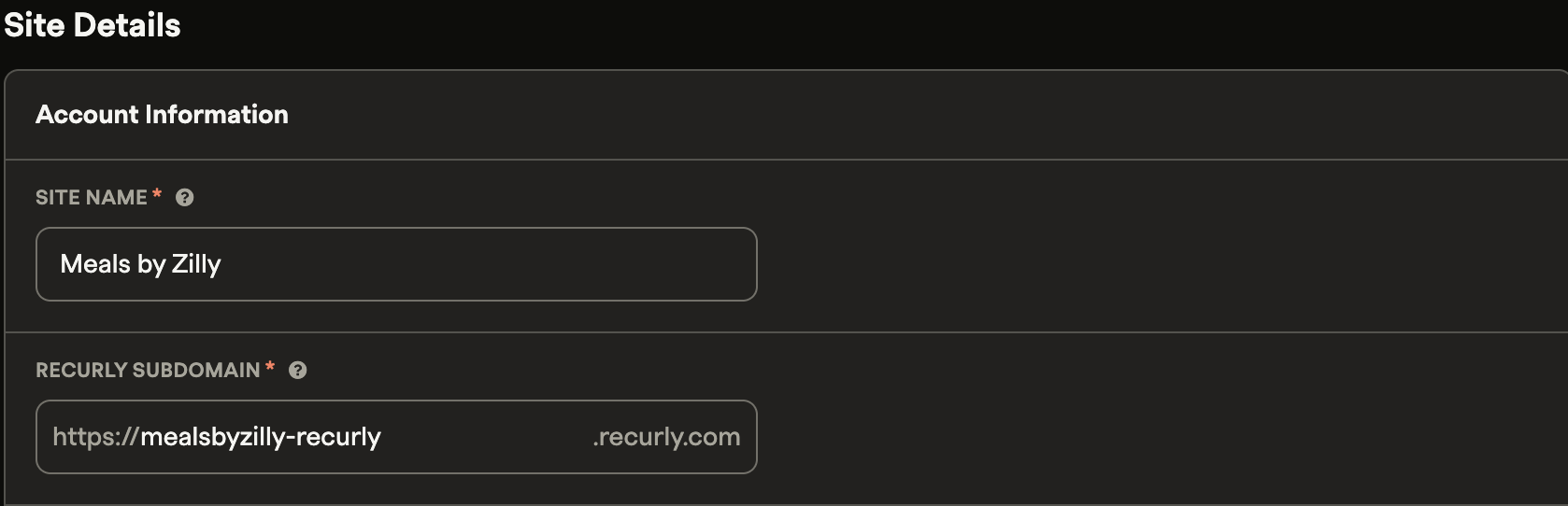 - Configure Sign-On Options: Set the "Default Relay State" to your site’s subdomain. Remember, you only need to input the subdomain, not the full URL. You can find the Recurly Subdomain under Site Settings from the Configuration navigation section of the site.