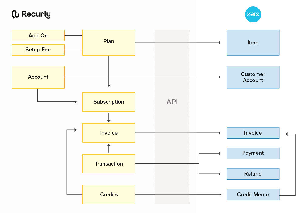 - Recurly Items, Plans, Setup Fees, and Add-Ons to Xero Inventory Items.